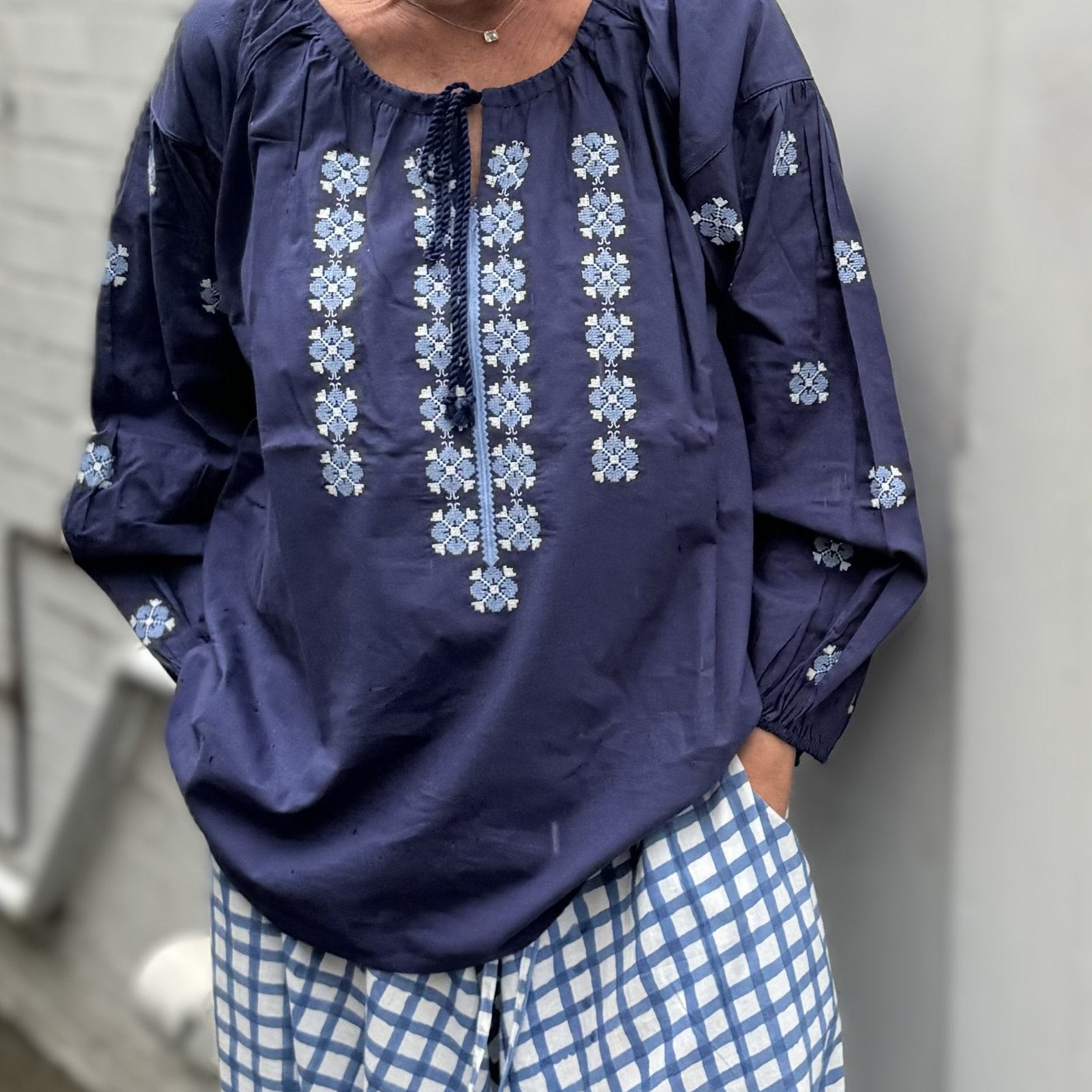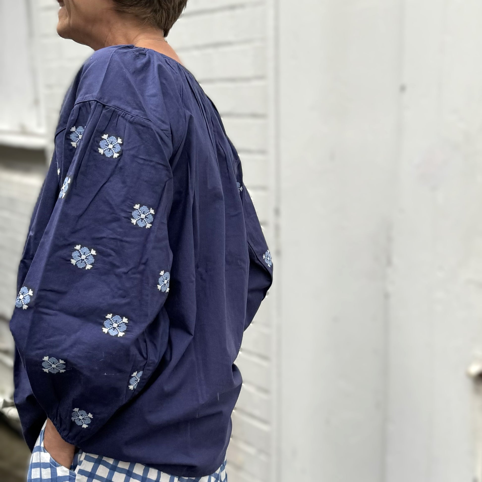 blue poplin embroidered top